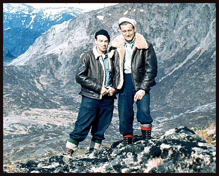 1. VP93 Radio gang atop the mountain overlooking the Bluie West One seaplane base in southern Greenland. I'm the one with the blue hat. Name of the companion long since forgotten.